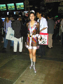 7.中は水着、外はシースルーと、とてもセクシーなバンダイのコンパニオンさん。見えそうで見えないところが、会場の男性陣の心をつかんでいましたな。 |