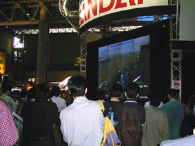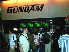 1,2.12月21日にPS2で発売される『機動戦士ガンダム』のブース。PS2の性能を活かした今作は一年戦争を忠実に再現。自らガンダムを操縦し、ガンダムの名シーンを堪能できるのだ。