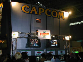 今回は、数多いゲームが出店されていたカプコンブース。「バイオハザード0」「鬼武者」「MARVEL VS CAPCOM」「ブレスオブファイア4」など話題のゲームが所狭しと並んでいた。さすがに人気タイトルが多いだけあって、ブース内も混雑し、試遊するにも一苦労。やはり一番混んでいたのは「バイオハザード0」。スタート地点である列車での試遊をすることができた。 |