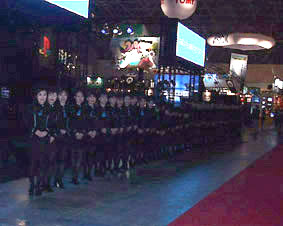 | ●入場と同時にソニーブースへ。コンパニオンたちのお辞儀ウエーブを見ることができた。 | ●夏に発売予定の、フィルムアクションゲーム「TVDJ」。ボタンを押して映像を作り上げる。 | ●PS2のタイトルとして発売された「I.Q REMIX+」。映像美に磨きが掛かったパズルゲームだ。 | ||||||||