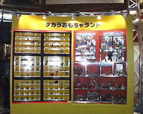 秋のゲームショウでも、よだれもんだったタカラブース。相変わらず、欲しいおもちゃがたくさん展示されていた。もちろん、ゲームタイトルも盛りだくさん。「科学忍者隊ガッチャマン」「宇宙の騎士テッカマン」「破裏拳ポリマー」「新造人間キャシャーン」という、4大ヒーローによる格闘ゲーム「タツノコファイト」が今回の目玉。一定の年齢以上の人なら(30歳以上?)、涙が出るタイトルだろう。 |