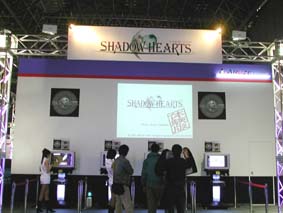 コンシューマゲーム機産業へ本格参入するアルゼは、美麗なグラフィックで話題騒然のPS2用RPG『シャドウハーツ』を筆頭に、『NEOGEO pocket color』の試遊台を多数取りそろえ、来場者を飽きさせない展示会場となっていた。