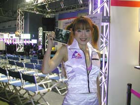 2.アルゼブースの受付で、『シャドウハーツ』の特別DVDや資料を配っていたコンパニオンのお姉さん。快く、撮影に応じてくださって感無量です。