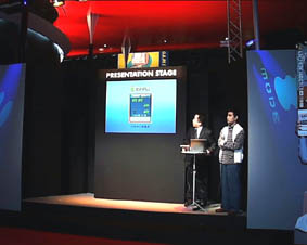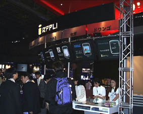 1,2.今、話題の『iアプリ』のゲームをゲームメーカーが中心に10社展示。JAVAで動いているとは思えないゲームの出来のよさにびっくり。