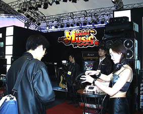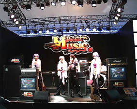 1,2,3.『POCKET MUSIC(仮)』のステージ上で、デモンストレーションとして「デープパープル」の「ハイウェイスター」などが本物の楽器と聞き間違うぐらいの再現力で演奏されていた。収録楽器数は約50類もあり、国内外の有名な曲や、ゲームミュージックのリミックスの楽譜も多数収録。もちろんフリーに楽器をひけることも可能と、いろんな遊び方ができそう。