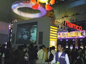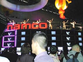 6.もはや、ナムコブースの名物。ブース上部で踊るコンパニオンのお姉さん。まるで天女の舞のようでした。 |
