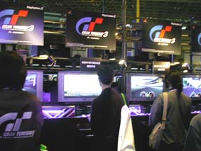 | 今回の目玉は発売日が決定した『グランツーリスモ3 A-spec』。発売日も決定し、ユーザーの熱気もヒートアップしていた。また、他社のPS、PS2用作品も展示され、「SCEブース」というよりも、「プレイステーションブース」のような印象が強かった。 |