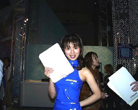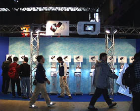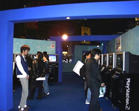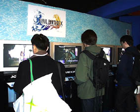 1,2,3,4.『FINAL FANTASY X』はさすが話題の超大作とあって、ブースの8割ぐらいをしめていた。試遊台では2つの場面を選ぶことができ、筆者は「寺院」の方を選択。まず驚いたのが『アクティブタイムバトル』が無くなり、画面右上に、顔が行動順に表示されるシステムに変更さていたこと。全体的には非常にテンポがよく、遊びやすくなっていたのが印象的だ。また、今回初となるボイスも違和感なく入っていた。これは発売が待ちどおしい。